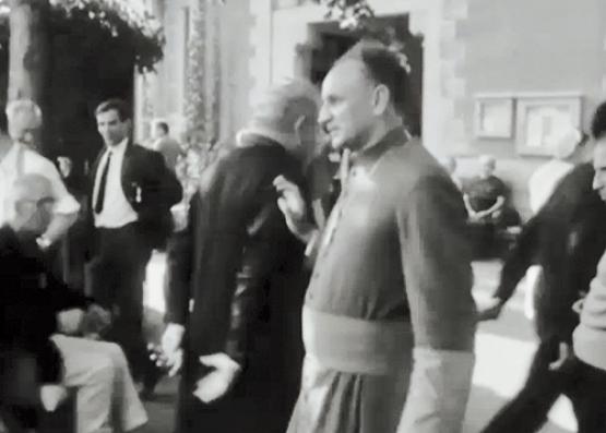 Diffusée le 26 octobre 1969, l’émission Aujourd’hui accompagne les malades de Suisse romande dans leur traditionnel pèlerinage à Lourdes. Pour l’occasion, ils sont accompagnés par Mgr Pierre Mamie, alors auxiliaire de Mgr François Charrière. C’est en 1970 que Mgr Mamie deviendra le nouvel évêque du diocèse de Lausanne, Genève et Fribourg, dont il assumera la charge jusqu’en 1999. Homme sensible à l’injustice, Mgr Pierre Mamie mena plusieurs combats pour les immigrés et les sans-papiers. Il s’approcha aussi des artistes, dont il aimait la compagnie, particulièrement de l’écrivain Frédéric Dard. GRU